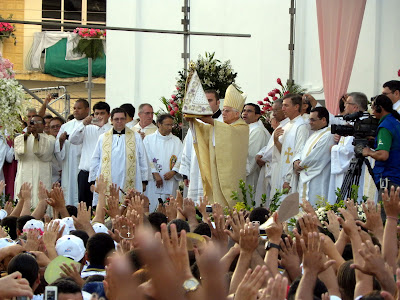 Mãos que imploram as bênçãos de Nossa Senhora de Nazaré, cuja imagem é usada por com Vicente Zico, arcebispo emérito de Belém, para abençoar a multidão reunida em frente à Sé, na missa campal de domingo, que antecedeu a saída do Círio.